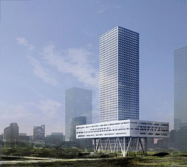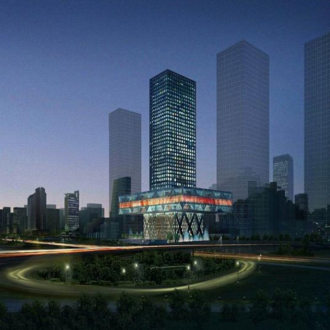 深圳证券交易所营运中心的“漂浮平台”设计方案由世界著名建筑设计大师雷姆·库哈斯担任首席设计师的荷兰大都会建筑事务所(OMA)设计。